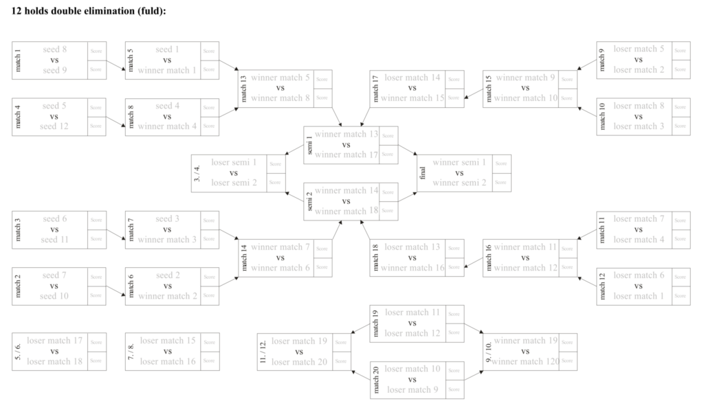 Turneringsark 12-holds Double Elimination 8-Holds Double Elimination DE8Download 10-Holds Double Elimination DE10Download Double Elimination 8-Holds med kval. A-spil-DE8-med_kvalDownload Double Elimination 16-Holds kval. Bspil24-holdDownload Puljespil – Max 5 hold Puljespil-for-max-5-holdDownload Baneoversigt : Double Elimination 12-Holds Baneoversigt_DE-12-fuldDownload